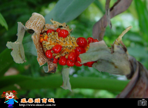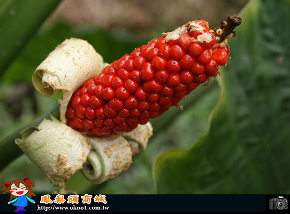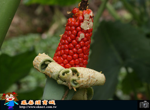 姑婆芋其鮮紅的果實很像是紅色的玉米。