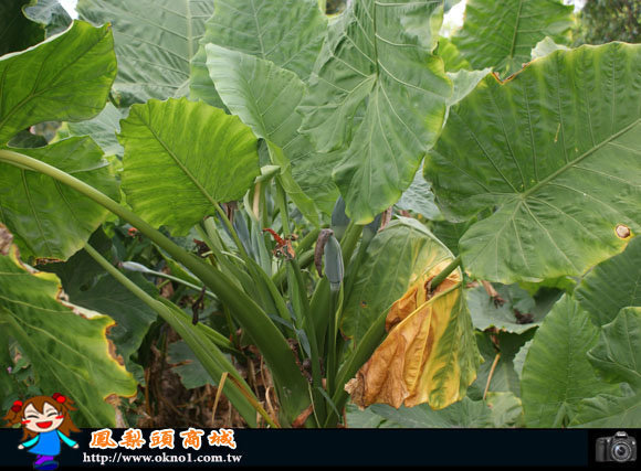 這是姑婆芋的植株,和一般的芋頭植株很像,但這是不能食用的唷!。